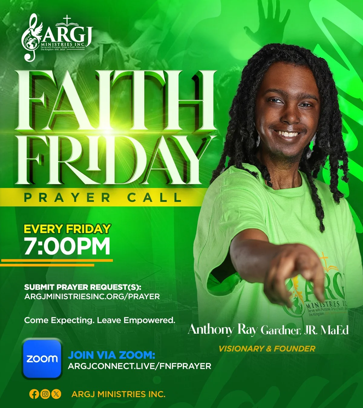A focused time of intercessory prayer, encouragement, and spiritual refreshing. Led by trusted voices within the ministry, Friday Night Prayer is where we come together to cover one another, stand in agreement, and lay our requests before God.